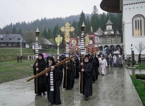 Fotoreportaj realizat la Mănăstirea Sihăstria Putnei de praznicul „Izvorului Tămăduirii”, unul dintre hramurile bisericii mari, vineri, 10 mai 2024.